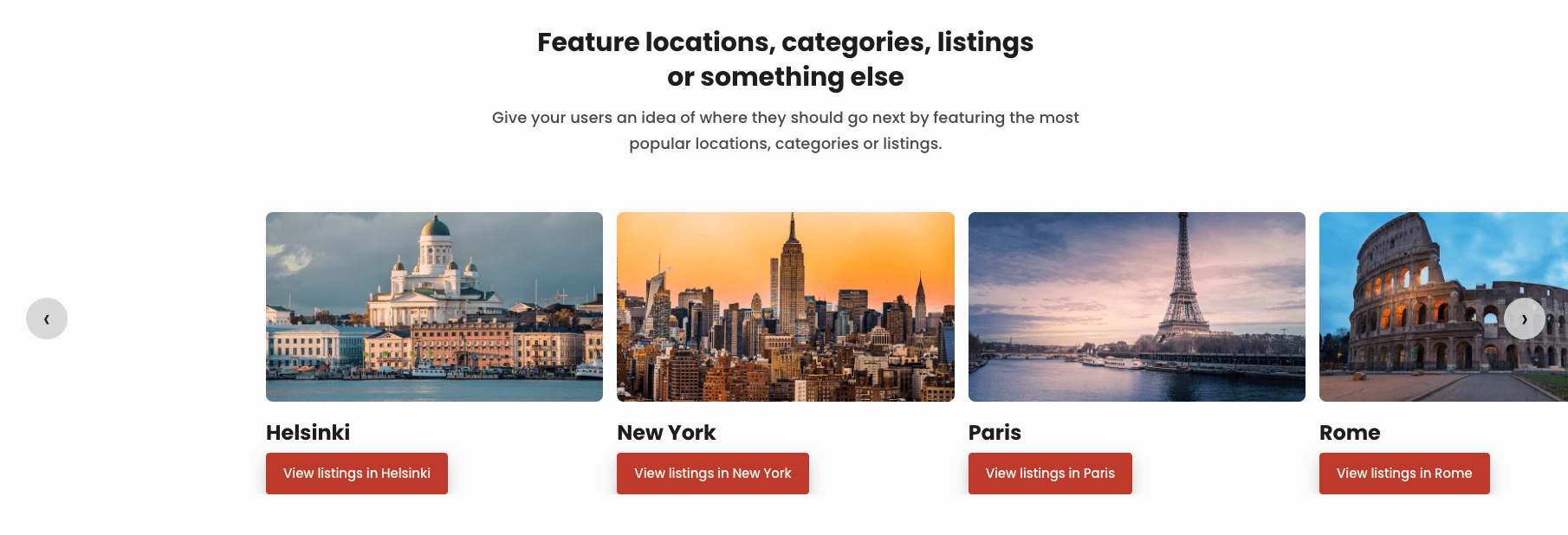 The carousel section shows content blocks side by side, in a carousel that can be browsed by swiping or scrolling. Carousel sections work great for a long array of blocks that the reader may or may not want to investigate in more depth.