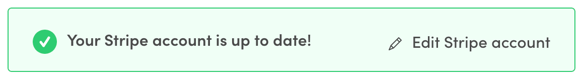 • If there are no requirements missing from the Stripe Account, the status box is in verificationSuccess mode